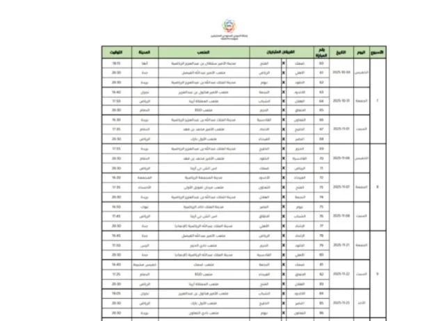 وأوضحت الرابطة أن إعداد الجدول جاء بعد دراسة شاملة لجاهزية الملاعب واستكمال أعمال الصيانة والتجديد، بالإضافة إلى مراعاة مشاركات الأندية السعودية في البطولات الآسيوية، وأخذ نتائج قرعة كأس خادم الحرمين الشريفين.