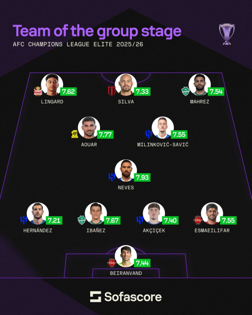 هاي كورة – تواجد 7 لاعبين من الدوري السعودي، في التشكيلة المثالية لمرحلة دور المجموعات من منافسات دوري أبطال آسيا للنخبة لموسم 2025–2026.