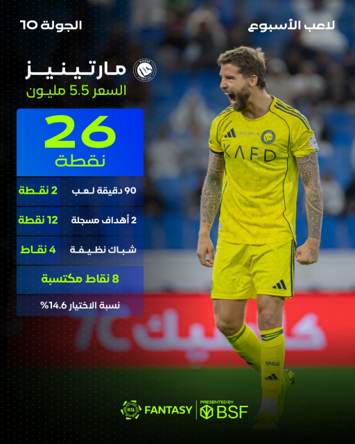 هاي كورة – واصل الإسباني إينيجو مارتينيز لاعب النصر، تألقه بعد الفوز على النجمة بنتيجة 5-0، مساء الأربعاء، ضمن الجولة العاشرة المؤجلة من دوري روشن.
